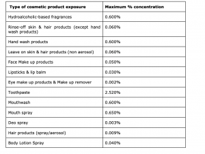 Based on this opinion, there will be a new restriction for this ingredient in various products placed on the market from Dec 2022. The below table will explain the new restriction based on each cosmetic category: